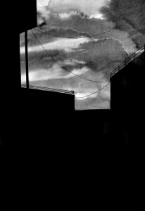 Landschaft, Tusche auf Papier, 40 x 50 cm, © David Kröswang
