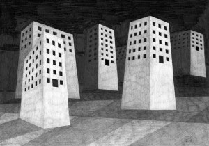 Siedlung, Bleistift auf Papier, 40 x 30 cm, © David Kröswang